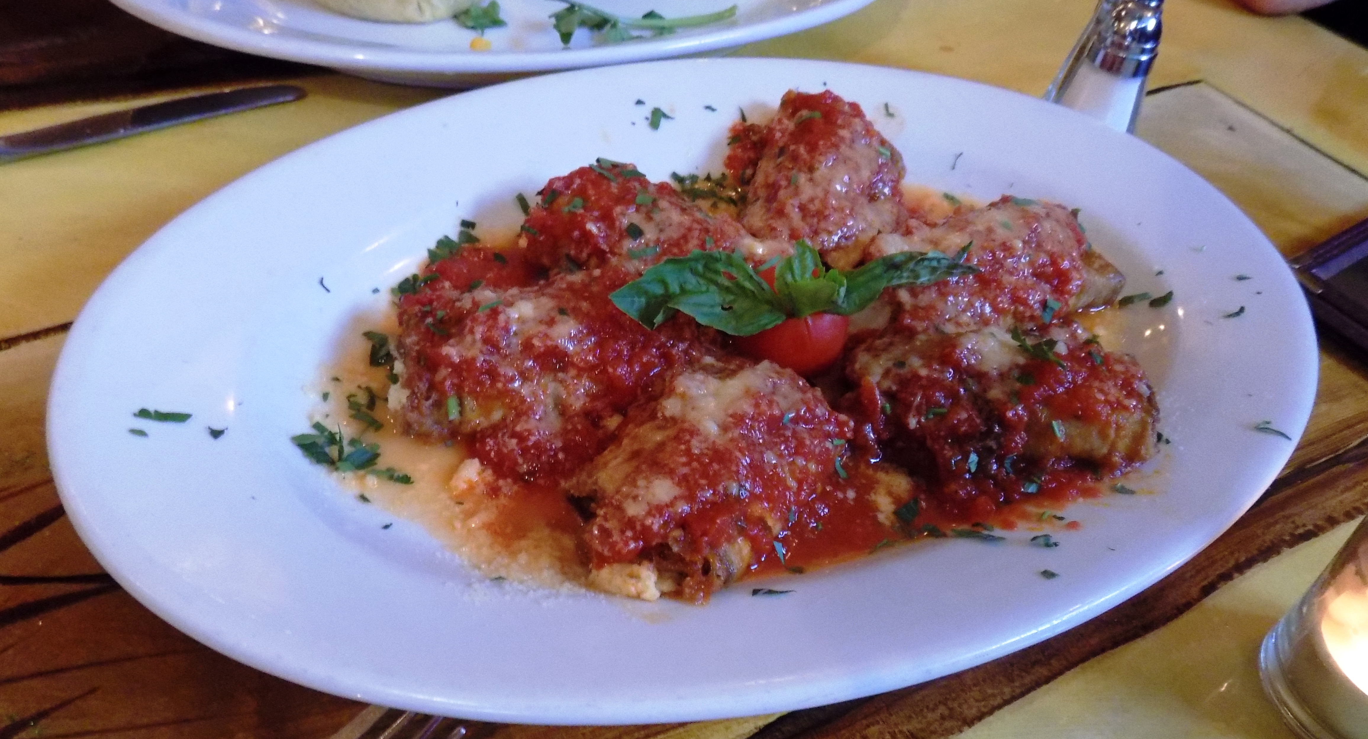 For our meal we began with a family size dish of Rollatini Di Melezane. This eggplant rollatini was baked in the restaurants pizza oven, allowing for a heavenly taste.