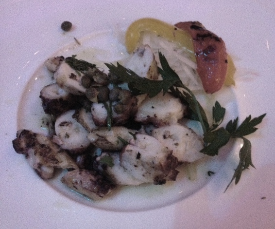 Our party of four shared the appetizers. We ordered fresh mozzarella and tomatoes, figs topped with walnuts and gorgonzola cheese, stuffed clams with shrimp, bell peppers and applewood bacon and zucchini flowers with with ricotta and mozzarella cheese. All the dishes were delicious with raves from the table about the clams which were also served in a light scampi sauce.